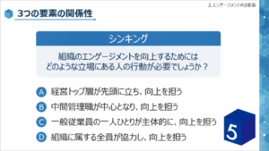 解説します。また、自分の立場でエンゲージメントについて考える「シンキング」を