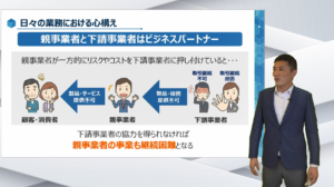 本コースではどのような場合に下請法が適用されるのか、また下請法違反を起こさないためにすべきことについて解説します。