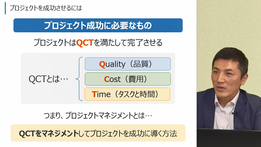 「プロジェクトマネジメント」とは、プロジェクトを成功に導くための総合的な管理手法のことであり、その活動は企画、リスクの測定、進捗管理など幅広い視点と知識が求められます。
